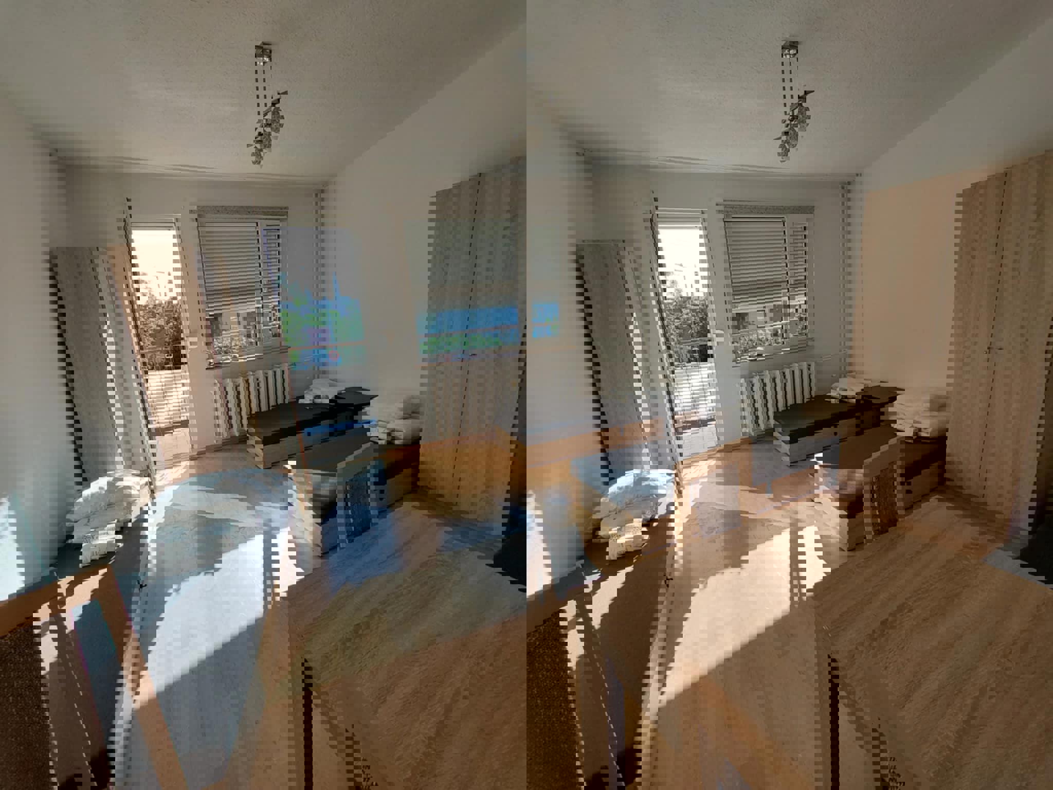 Oferujemy przytulną i w pełni umeblowaną kwaterę pracowniczą idealną dla grup pracowników lub ekip budowlanych. Pokój jest jasny, czysty i funkcjonalny – wyposażony w trzy solidne drewniane łóżka piętrowe, wygodne materace, pościel oraz pojemne szafy i regały na ubrania.