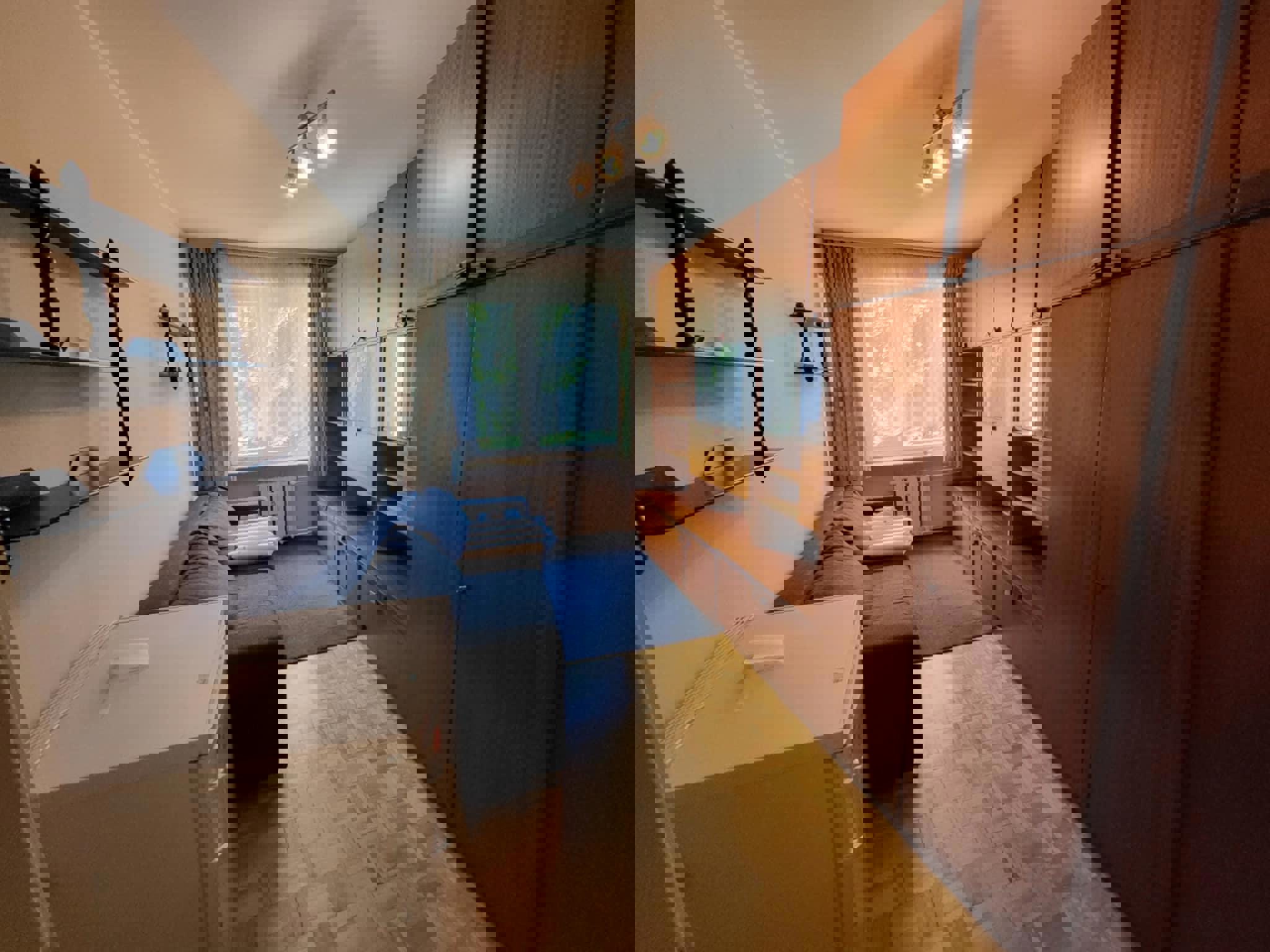 Oferujemy przytulną i w pełni umeblowaną kwaterę pracowniczą idealną dla grup pracowników lub ekip budowlanych. Pokój jest jasny, czysty i funkcjonalny – wyposażony w trzy solidne drewniane łóżka piętrowe, wygodne materace, pościel oraz pojemne szafy i regały na ubrania.