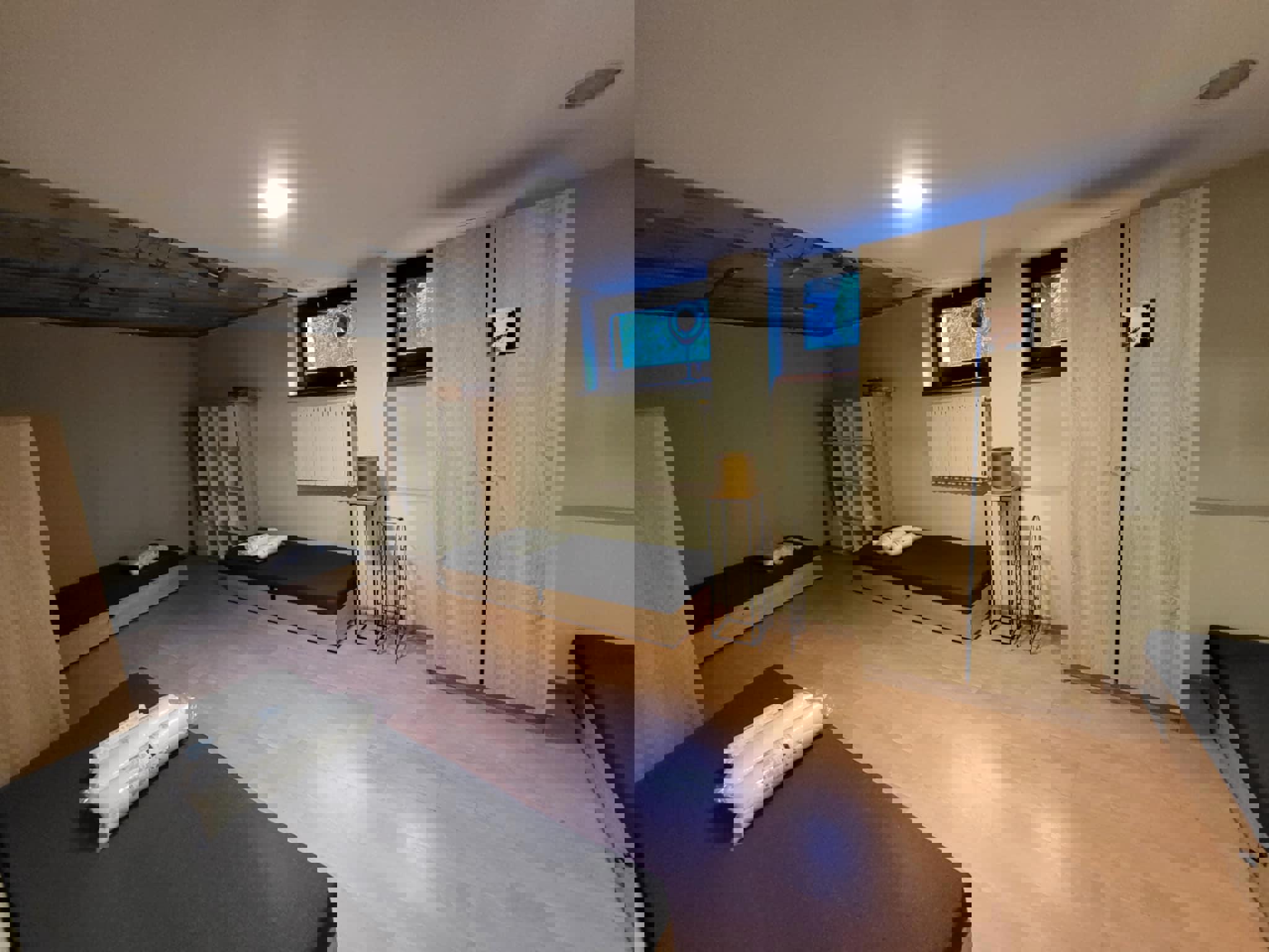 Oferujemy przytulną i w pełni umeblowaną kwaterę pracowniczą idealną dla grup pracowników lub ekip budowlanych. Pokój jest jasny, czysty i funkcjonalny – wyposażony w trzy solidne drewniane łóżka piętrowe, wygodne materace, pościel oraz pojemne szafy i regały na ubrania.