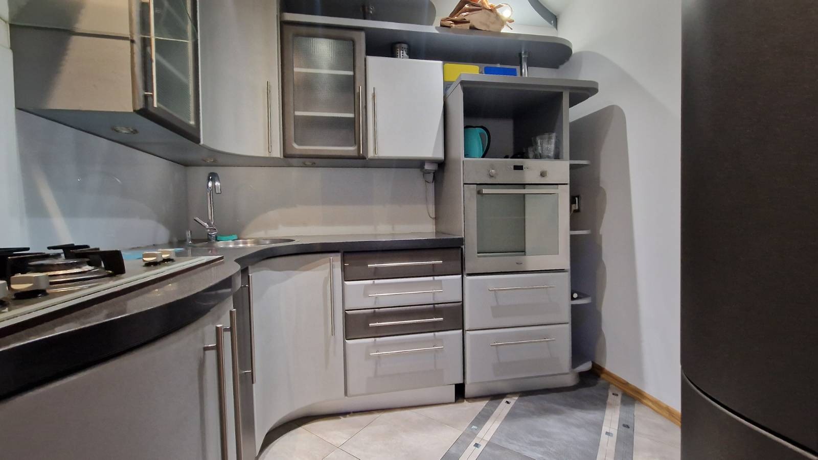 • w pełni wyposażona kuchnia (lodówka, kuchenka, naczynia),