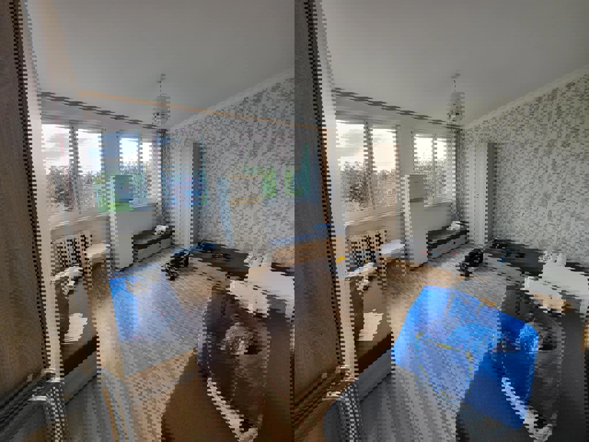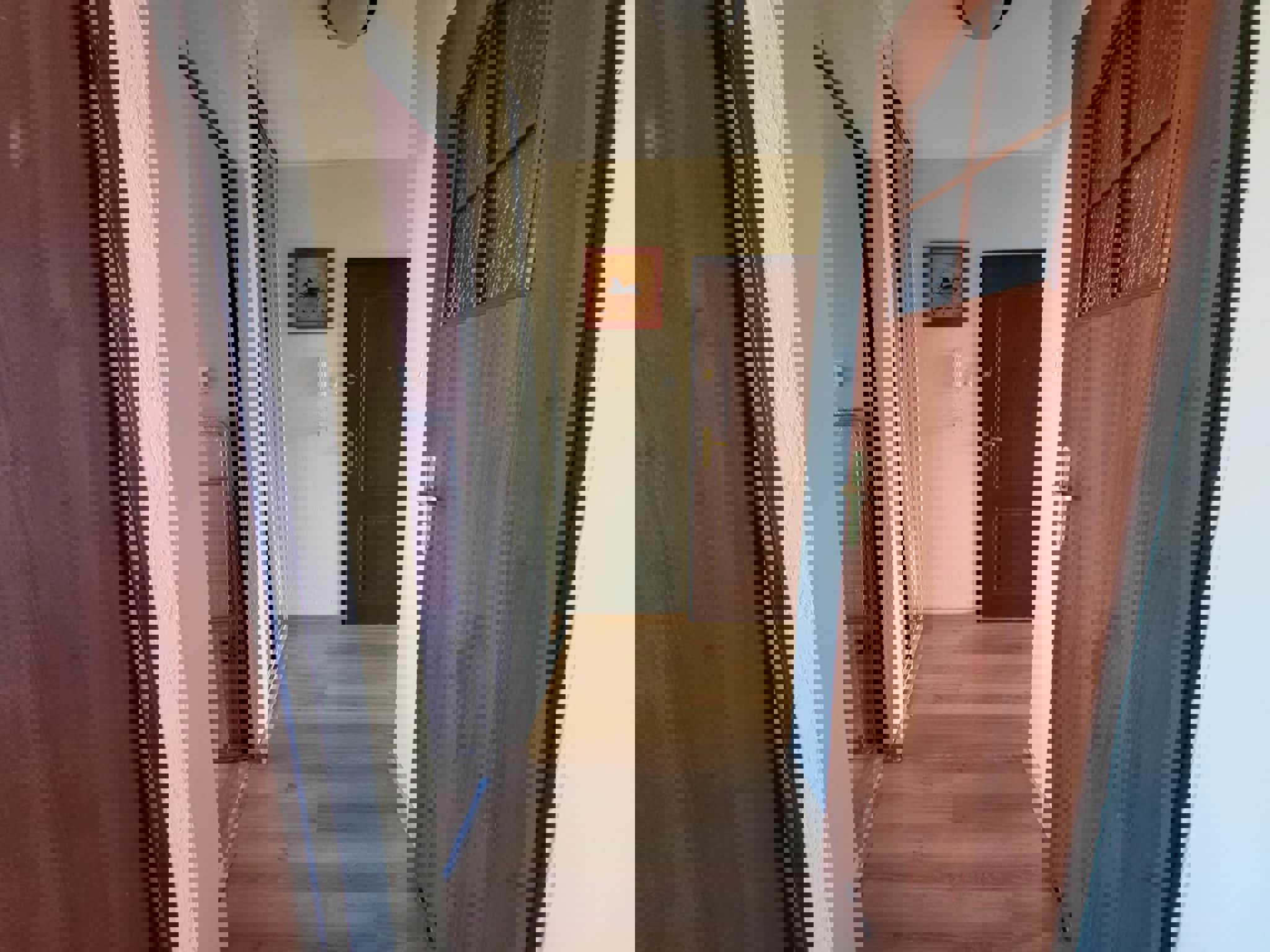 Oferujemy przytulną i w pełni umeblowaną kwaterę pracowniczą idealną dla grup pracowników lub ekip budowlanych. Pokój jest jasny, czysty i funkcjonalny – wyposażony w trzy solidne drewniane łóżka piętrowe, wygodne materace, pościel oraz pojemne szafy i regały na ubrania.